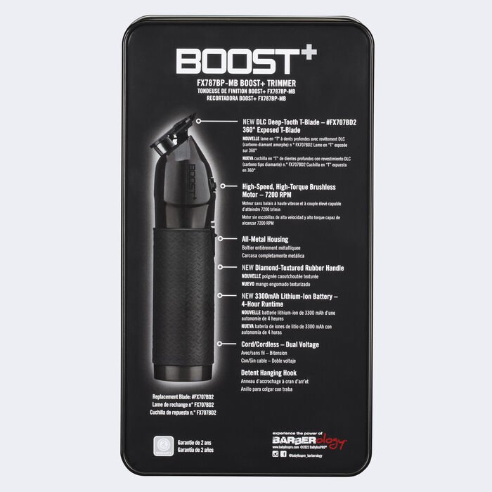 BaBylissPRO® Boost+ Metal Lithium Trimmer features a new higher speed, higher torque brushless motor – 7200RPM!